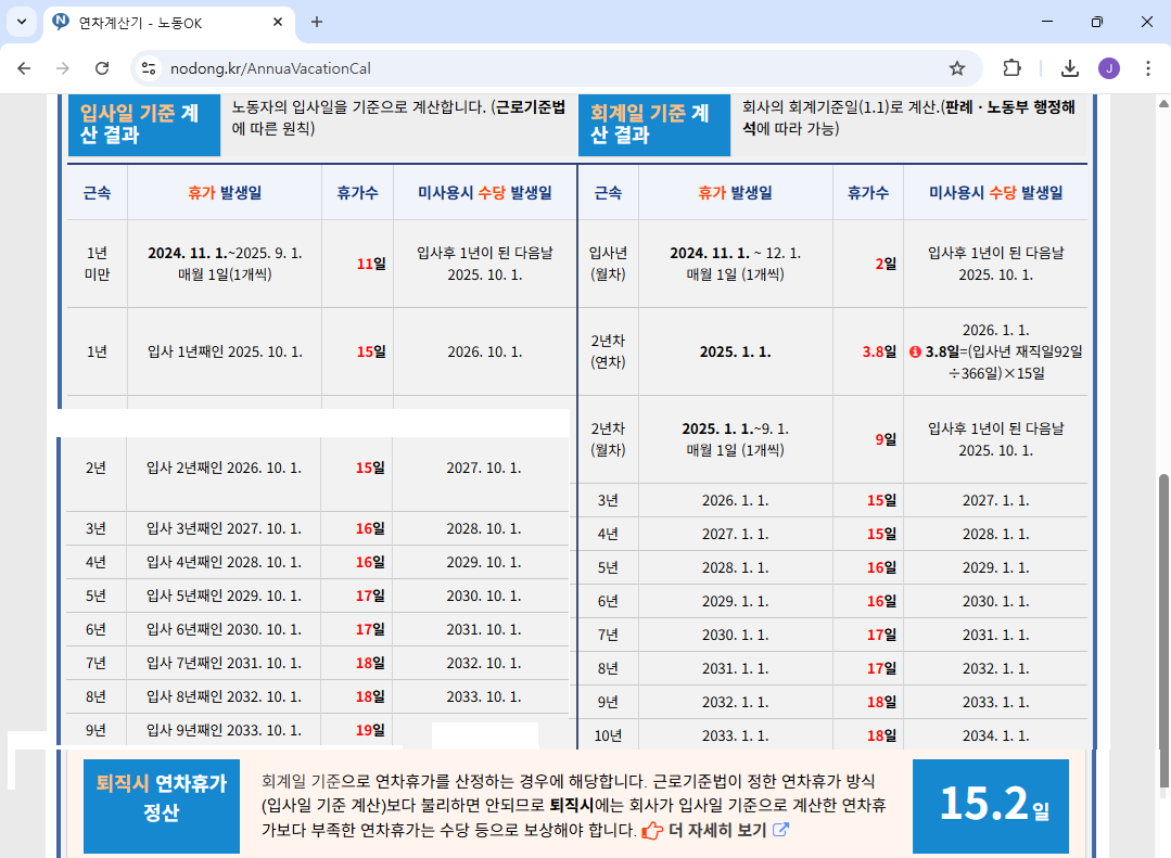 입사일 기준으로 관리하는 회사는 언제 입사하더라도 휴가일수 관련 문제가 없고 처리가 간단하다.